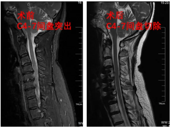 术后,患者上肢不适症状逐渐消失,经复查显示压迫症状解除。