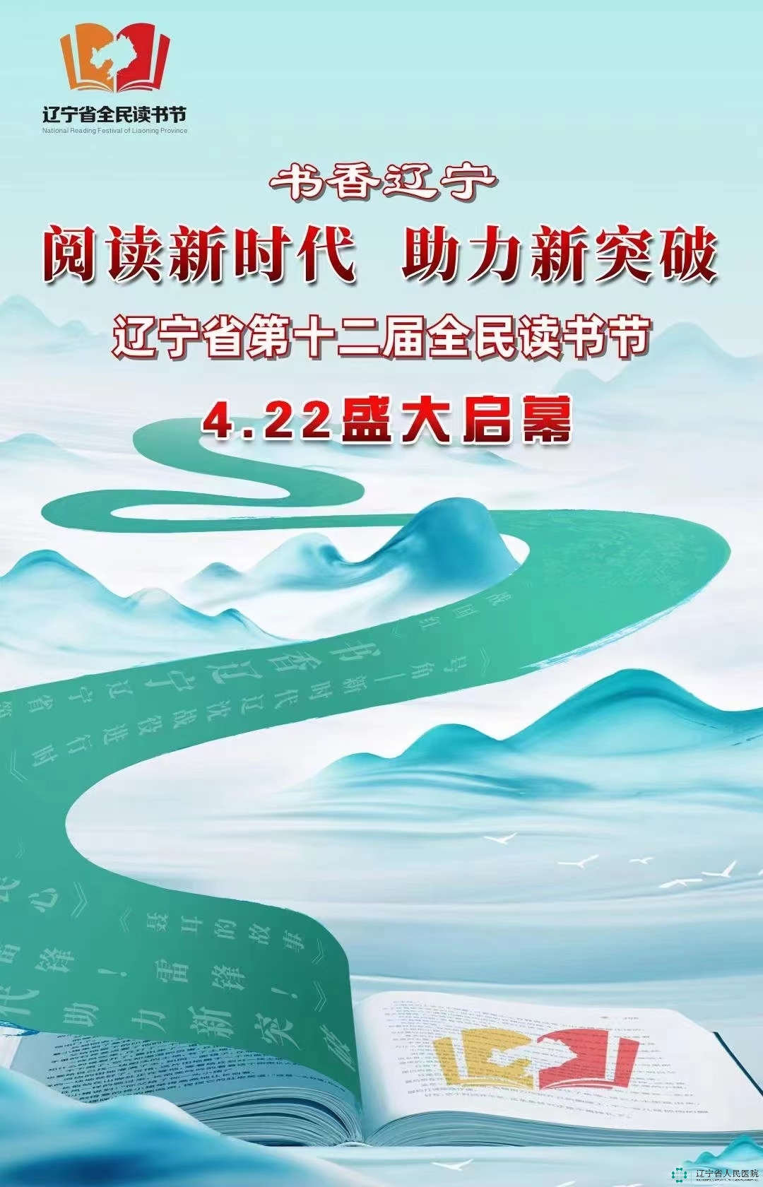 由辽宁省全民读书节活动组委会主办的辽宁省第十二届全民读书节线上启动仪式,将于4月22日在人民网辽宁频道、新华网、新华社现场云、央视频辽宁频道、央视频移动网、北国新闻客户端、北斗融媒客户端、辽宁卫视新媒体、辽视新媒体、IPTV、东北新闻网、辽宁文化云平台、快手(辽宁读书)、抖音(辽视读书吧)、新浪微博、腾讯新闻、微信视频号、百度百家号、学到汇公众服务平台等网络、媒体平台,及全省 14 个市的官方快手账号同步直播。欢迎全院职工积极收看启动仪式直播。