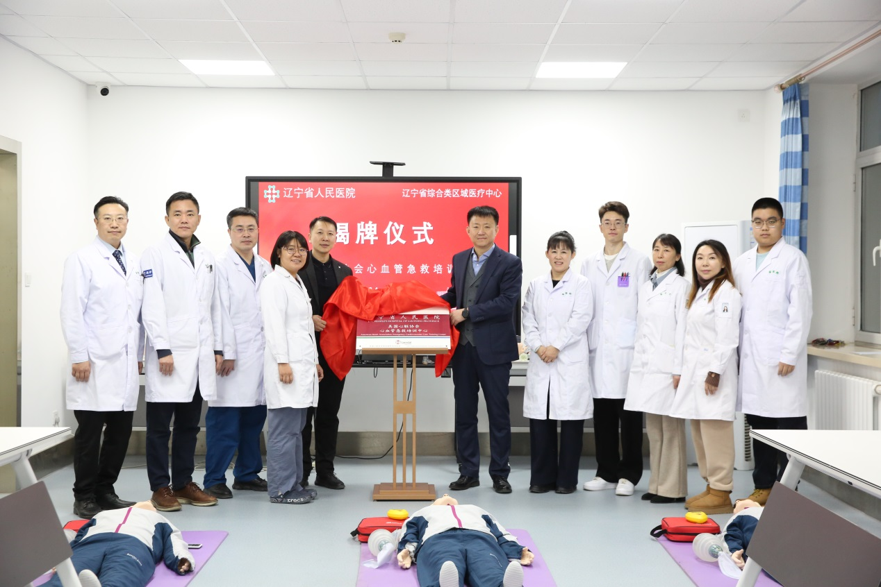 12月19日, “美国心脏协会(AHA , American Heart Association )心血管急救培训中心”在我院揭牌,副院长李岩峰出席仪式,科教处处长于国宁、急诊医学科主任胡晓、全科医疗科行政管理负责人朱亮亮、重症医学科副主任谭永峰、神经内科主任医师张贺敏、心血管内科医师于鹏宇及培训学员参加。