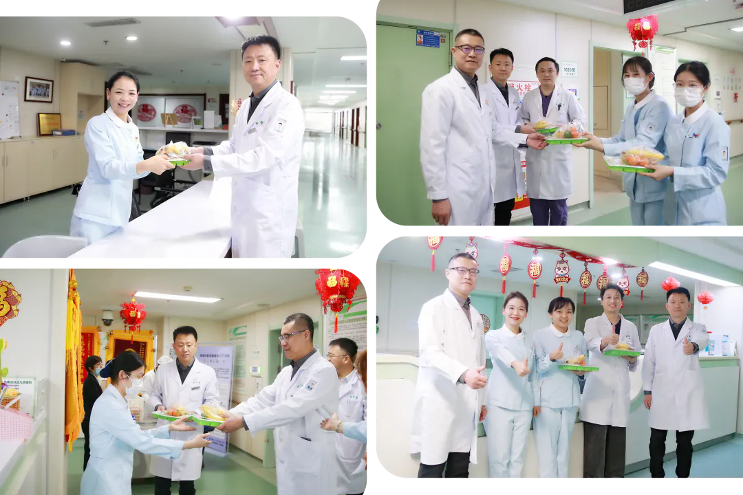 1月28日下午,在这个充满温情与团聚氛围的除夕夜,为了向这些无私奉献的一线工作者表达最深切的敬意和关怀,院党委书记曲鹏、院长臧培卓、副院长李艳玲、卜献民、李岩峰,纪委书记丁大璐,副院长马波带领相关职能部门负责人组成多个小组为除夕夜值班岗位的工作人员送去热气腾腾的饺子和甜蜜水果,并送上最美好的新春祝福。