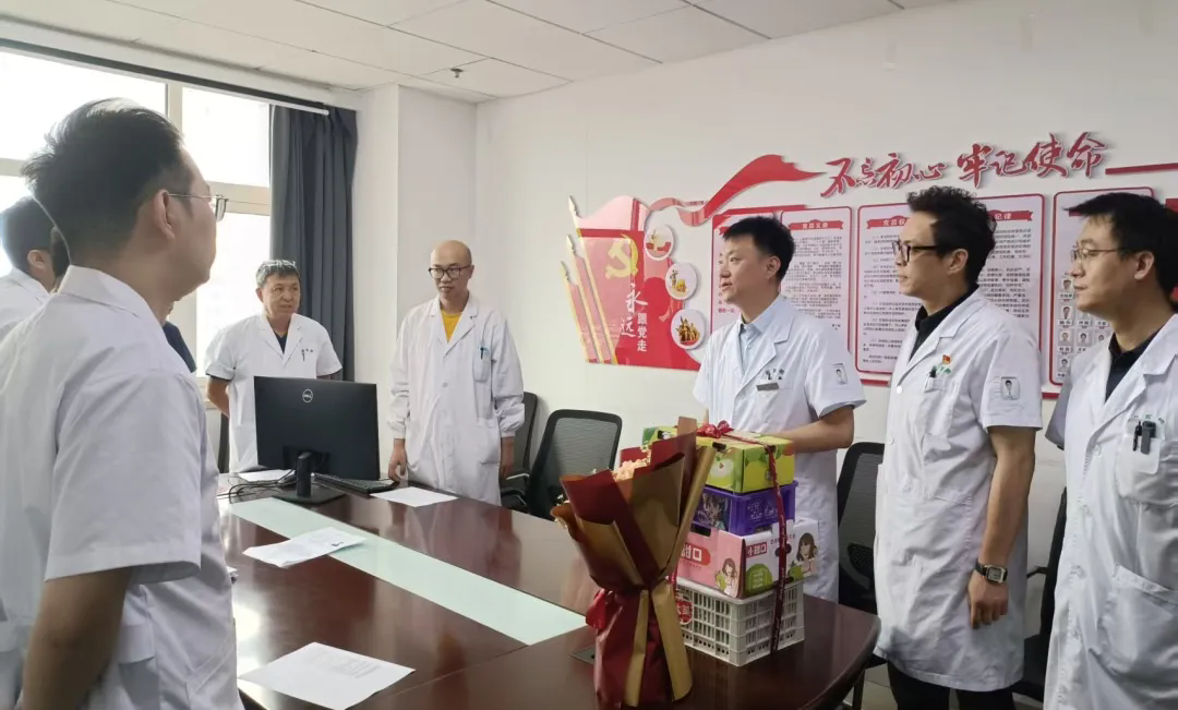 8月19日上午,院党政领导班子成员分成多组到临床科室走访慰问,向临床一线的医生表达节日的祝福和敬意。