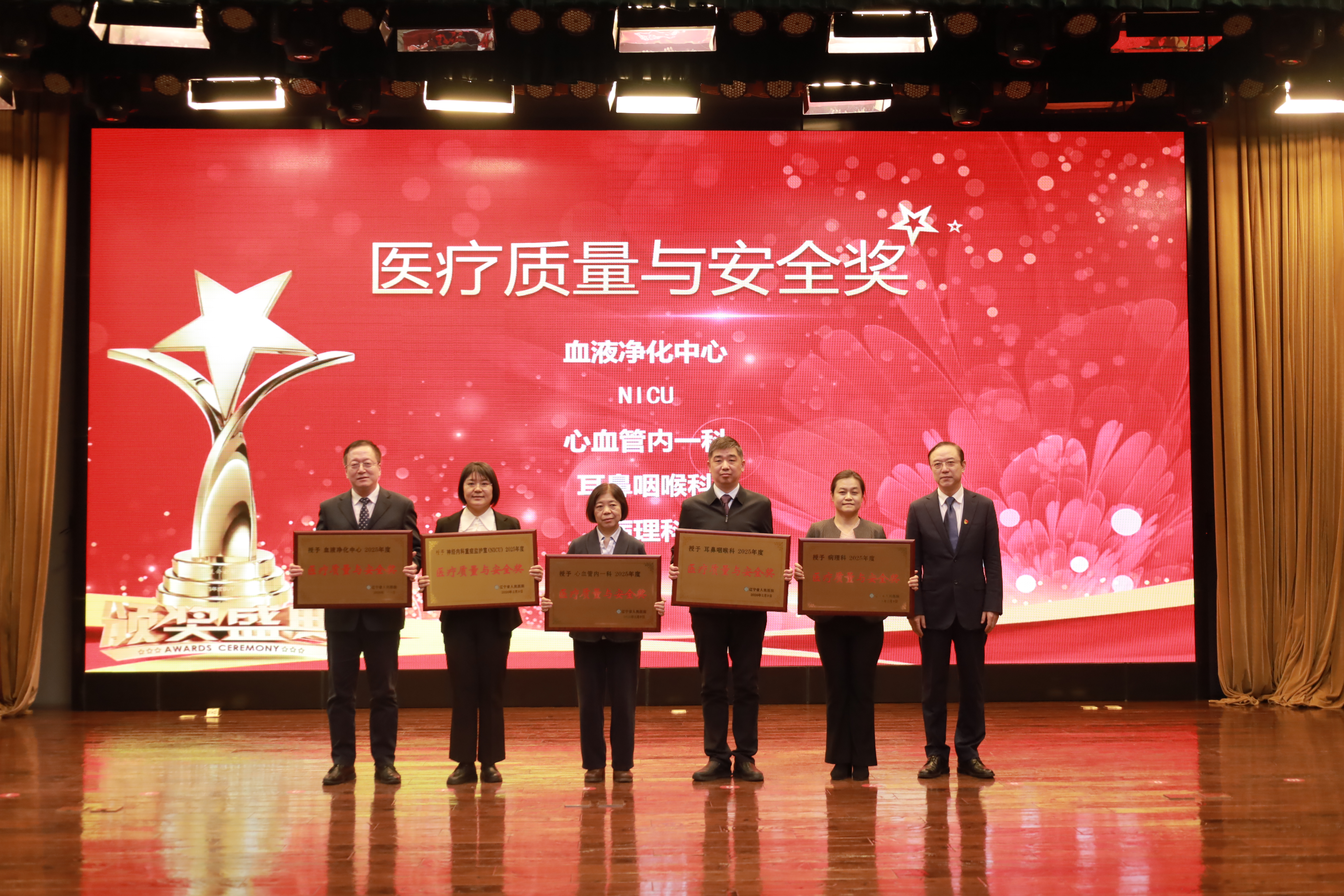 院长臧培卓为医疗质量与安全奖颁奖:血液净化中心、NICU、心血管内一科、耳鼻咽喉科、病理科