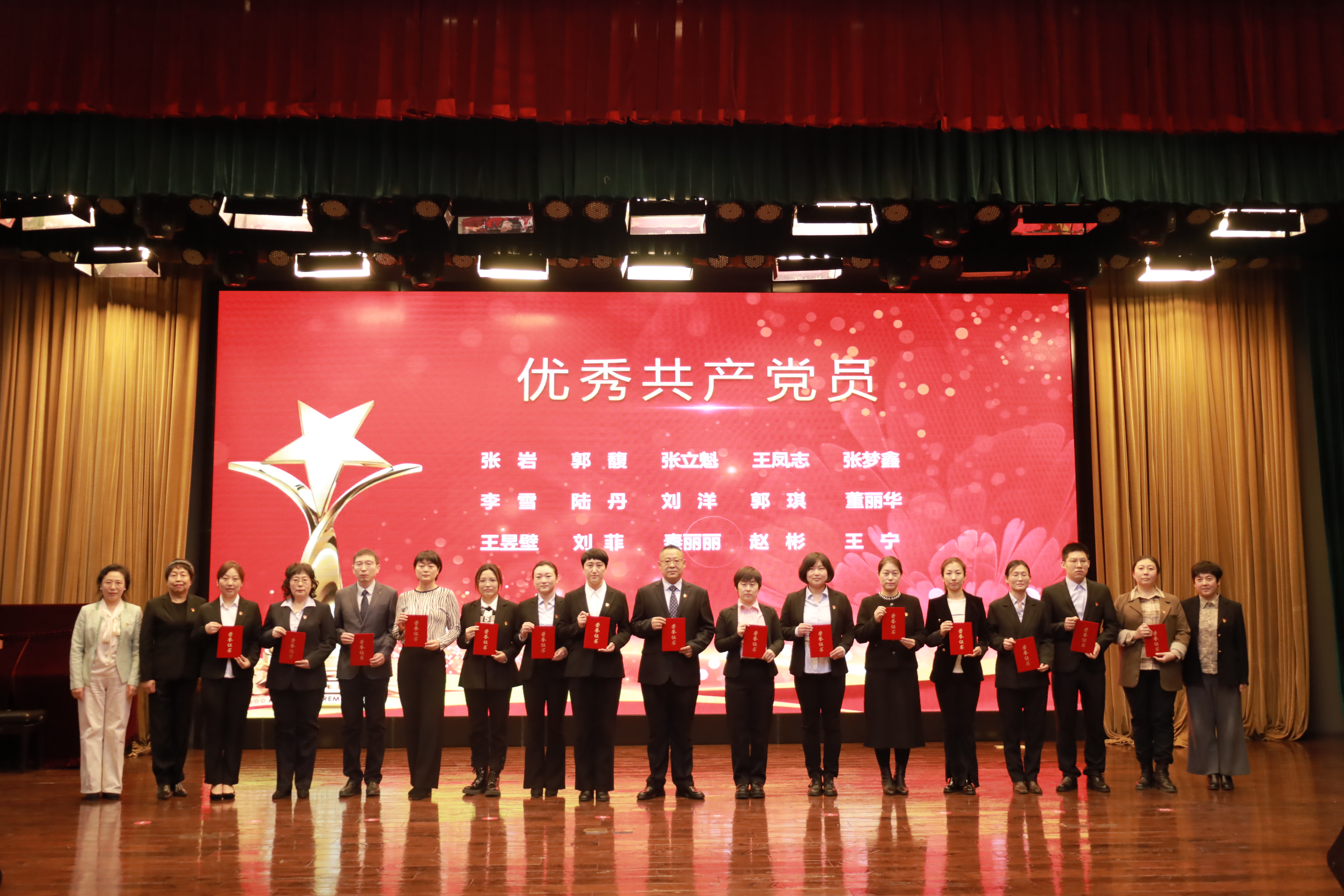 党委委员金瑷瑛、刘莹、蔺慕会为优秀共产党员颁奖:张岩、郭馥、张立魁、王凤志、张梦鑫、李雪、陆丹、刘洋、郭琪、董丽华、王昱壁、刘菲、秦丽丽、赵彬、王宁、侯思远、毕冉、刘恩娇、李文娟、贾伟、付强、徐巍、石杰、巩婷、冯晨、李思慧、赵溪、孙磊、陈宝君、吴嘉娣