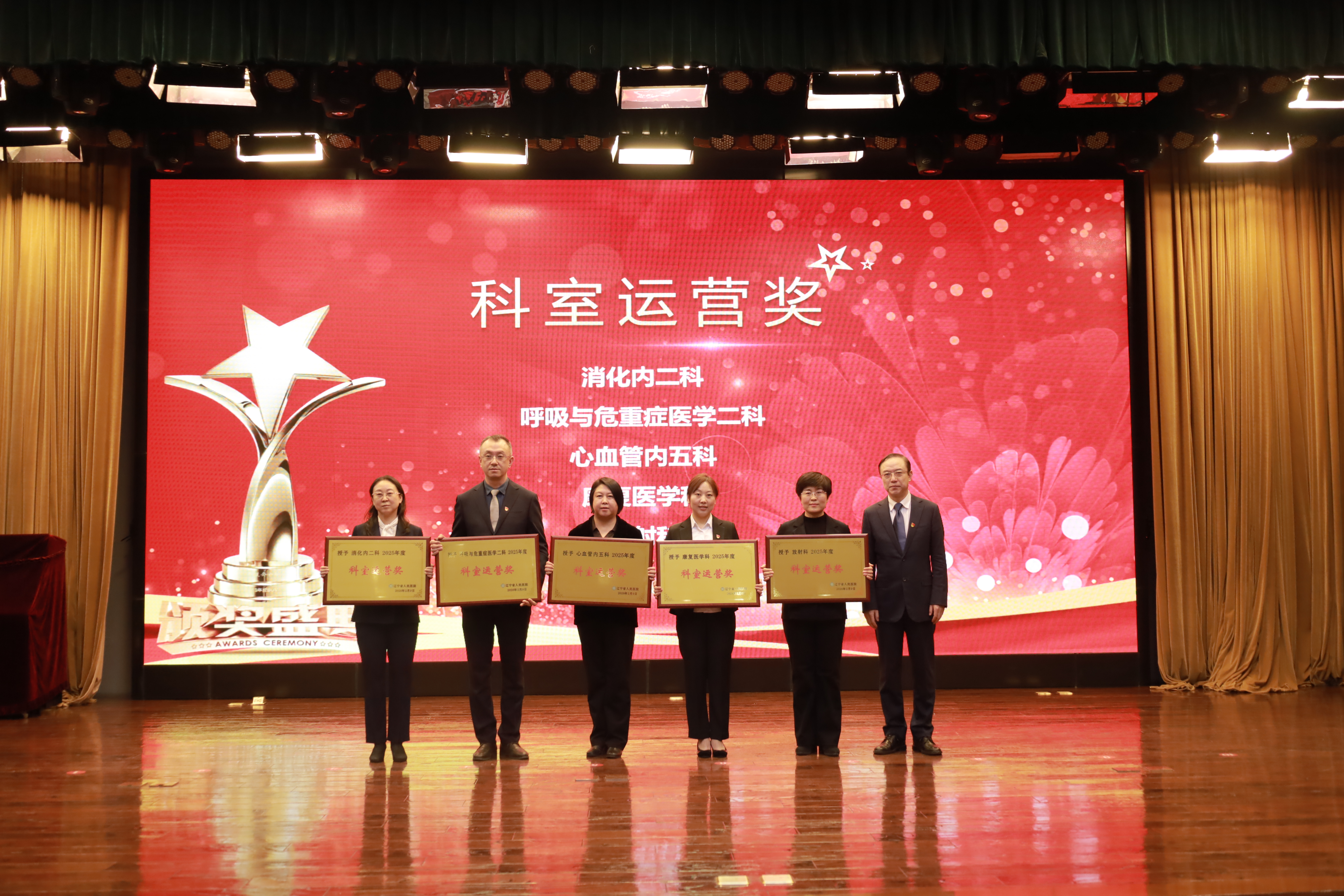 院长臧培卓为科室运营奖颁奖:消化内二科、呼吸与危重症医学二科、心血管内五科、康复医学科、放射科