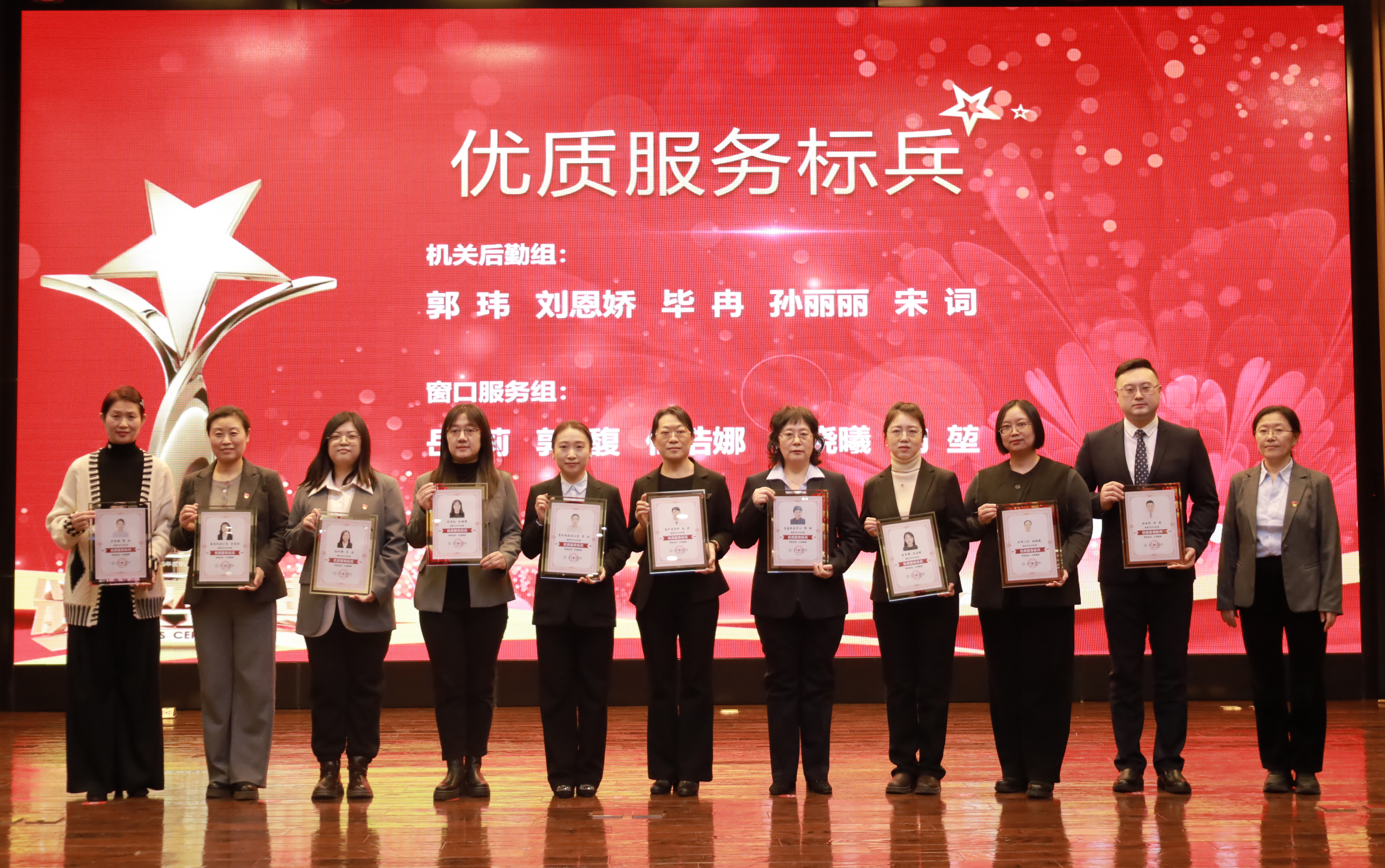 副院长李艳玲为职能部门优秀中层管理干部获得者颁奖:夏经菊、才娜、王慧声、陈达、王信璋