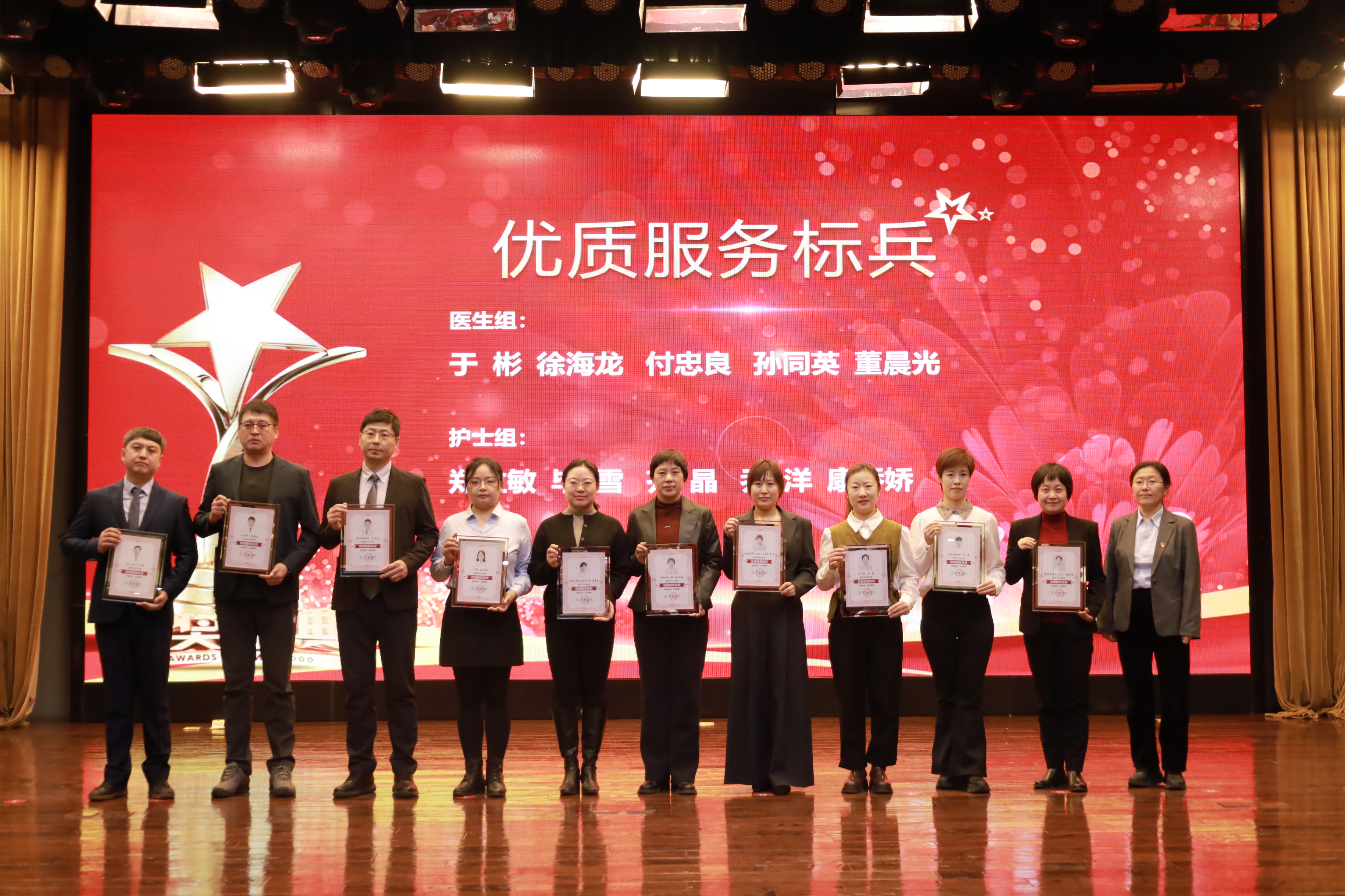 副院长周晓阳为优质服务标兵获得者颁奖(医生:于彬、徐海龙、付忠良、孙同英、董晨光)(护士:郑立敏、毕雪、齐晶、乔洋、康娇娇)(机关后勤部门:郭玮、刘恩娇、毕冉、孙丽丽、宋词)(窗口服务部门:岳莉、郭馥、任浩娜、林晓曦、向堃)