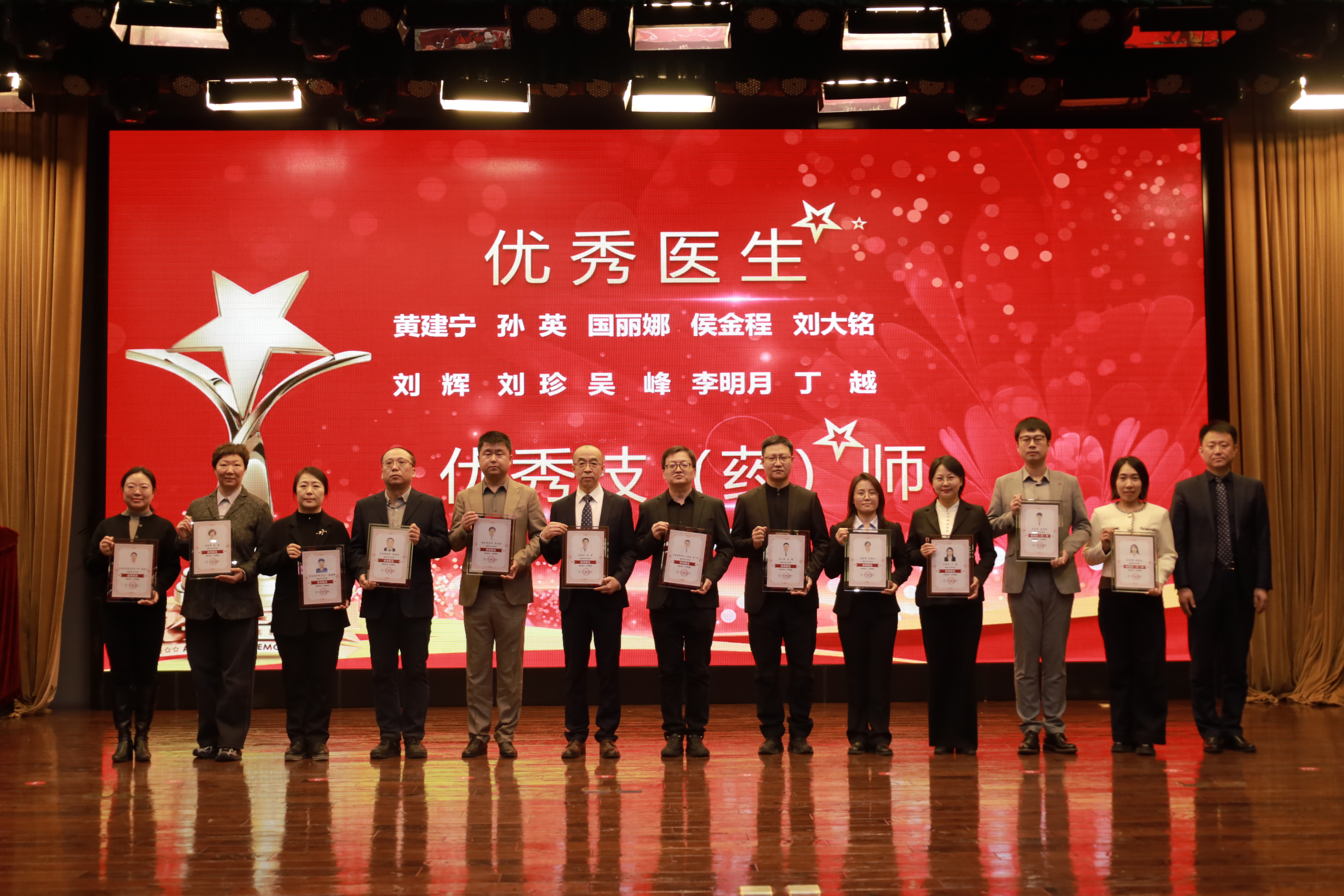 副院长李岩峰为优秀医生、优秀技(药)师获得者颁奖:黄建宁、孙英、国丽娜、侯金程、刘大铭、刘辉、刘珍、吴峰、李明月、丁越、姜思远、韩佳容