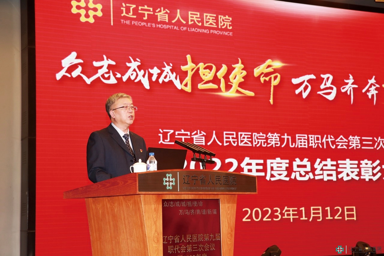 院长臧培卓作2022年度医院工作报告。报告统筹医院疫情防控与医院发展,擦亮医院高质量发展的底色,回应患者及员工关切,从六大方面即以党的建设为统领,旗帜鲜明讲政治,开创医院发展新局面;以医疗质量与安全为基础,提质增效,构建医院高质量发展新体系;以三级公立医院绩效考核为抓手,调结构、促创新,推进医院高质量发展新效能;以“六个度”为驱动,培育人才和重点学科群,构建医院高质量发展的新趋势;坚持常态化疫情防控,科学精准施策,建立新形势下疫情防控新模式;以患者、员工为核心,彰显公益担当,推动医院高质量发展的新文化,全面回顾了医院2022年度工作。