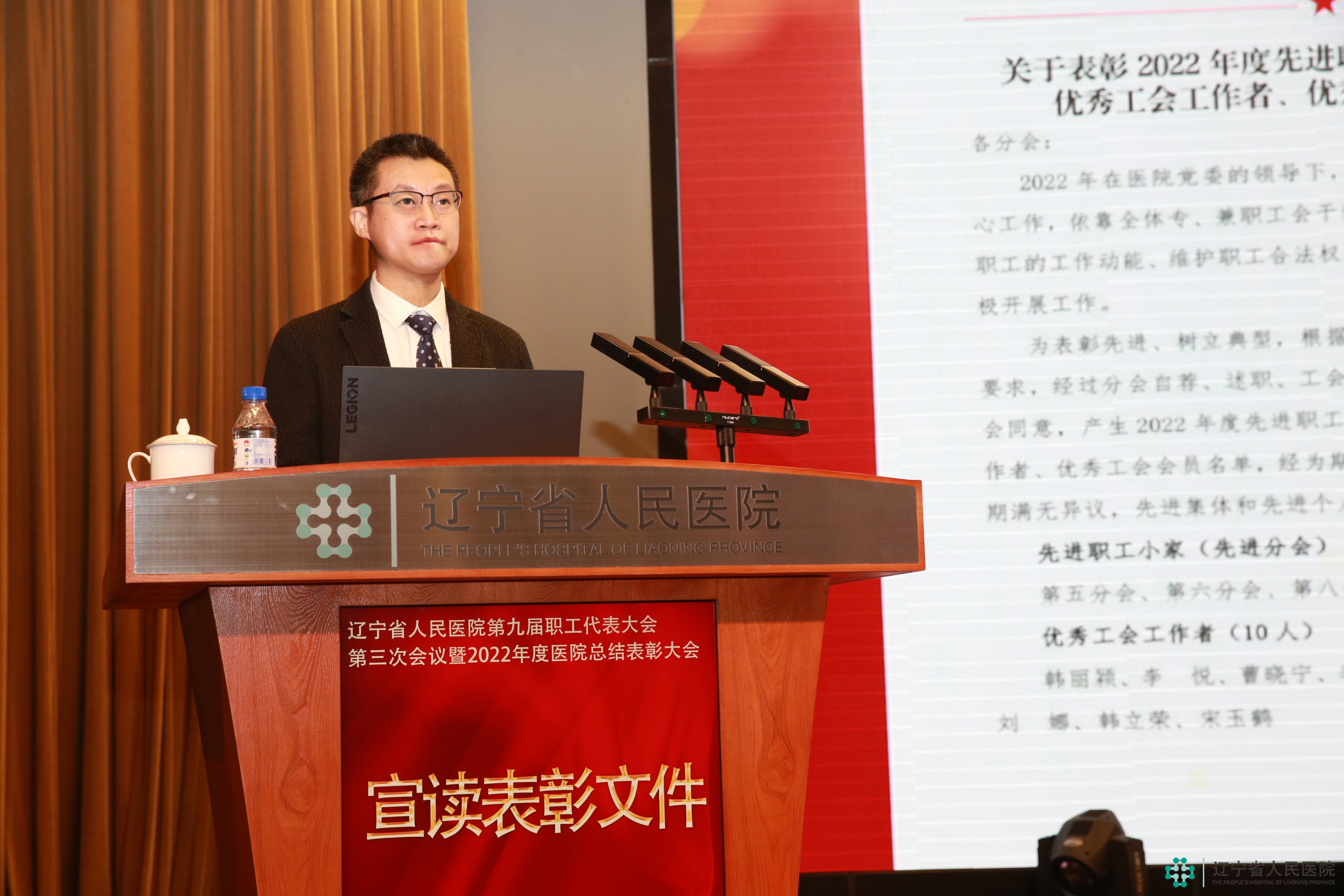 医院工会主席、纪委书记袁志军主持职代会环节。2022年院工会在院党委的正确领导下,在全体工会委员和职代会代表的共同努力下,院工会紧密围绕医院工作中心工作,服务大局,履行职责,扎实做好工会各项工作,为推进辽宁省人民医院民主管理、民主监督,助力现代化医院高质量发展。新一年,工会将继续认真履职,积极为医院规划发展贡献力量。