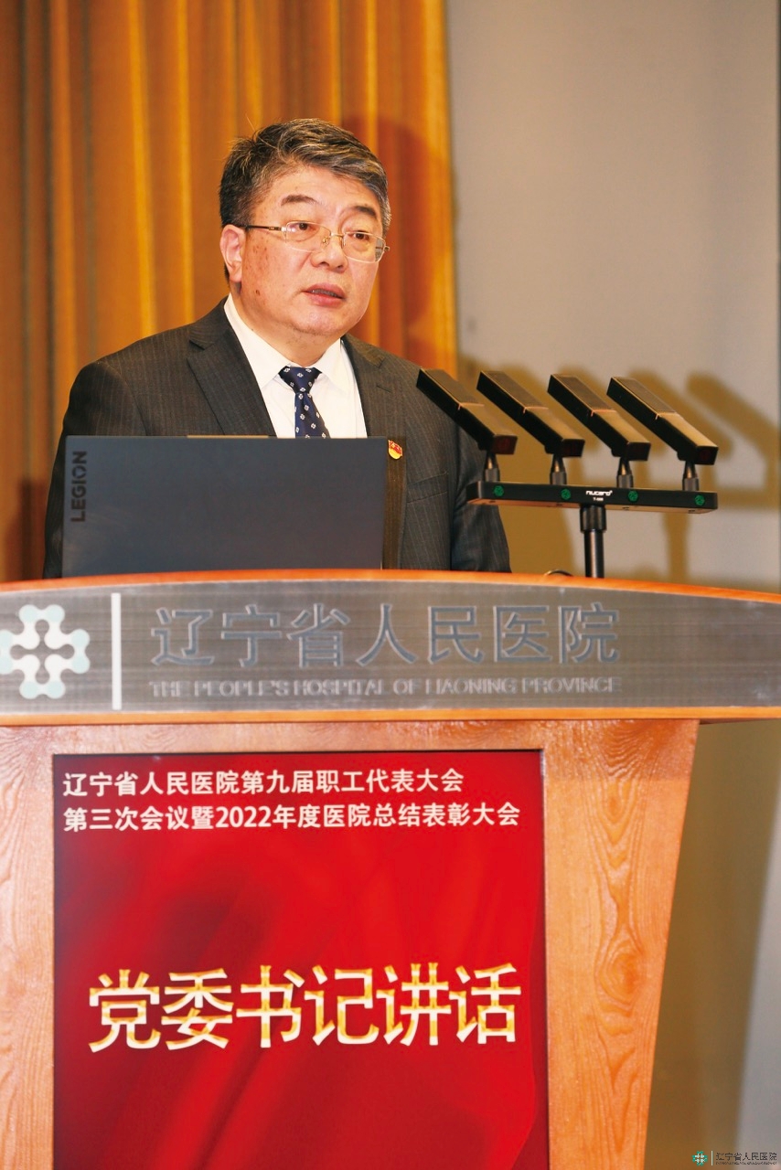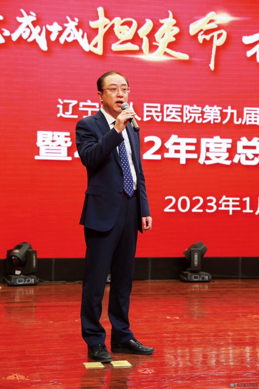 党委书记曲鹏代表院党委向全院党员干部职工及家属表示感谢,并提出:第一、要珍惜发展成就、坚定发展信心。过去的一年里,院党委深入学习贯彻党的二十大精神,切实发挥“把方向、管大局、做决策、促改革、保落实”的作用,在党的建设、疫情防控、深化医改、三级公立医院绩效考核、学科建设、人才培养、社会担当等方面取得了丰硕成果。每位省医人都应该倍加珍惜今天的发展成就,在各自的岗位上明确目标,找准定位,发挥作用,为医院的发展尽心尽力、尽职尽责;第二、以党建为引领,进一步推动医院高质量发展。坚持党建引领,积极探索推动党建工作与业务工作深度融合的路径和方法,贯彻“一条主线”,即坚持和加强党对公立医院的领导;明确“两个方向”,即强学科、抓服务;建设“一支队伍”,即建设一支推动医院高质量发展的人才队伍;实现“一个目标”,即医院的高质量发展,建成辽宁中部区域医疗中心,建设国内一流的现代化管理型医院和国内一流的高水平医院。第三,加强党风廉政建设,全面推进从严治党。一是加强政治建设,做政治上的明白人;二是要“守纪律、讲规矩、重品行”;三是要正确看待权力,主动接受监督;四是要知敬畏、存戒惧、守底线,敬畏党、敬畏人民、敬畏法纪。