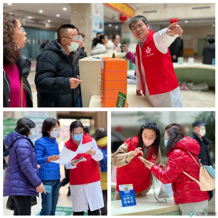 本周一,院党委启动了“喜迎建院75周年、学雷锋志愿导诊”活动,活动将持续到4月中旬。穿着红色马甲的志愿者每日上午在人员流量大的区域流动巡查,协助导诊、分流,帮助患者进行自助机挂号、缴费、打印报告单等。