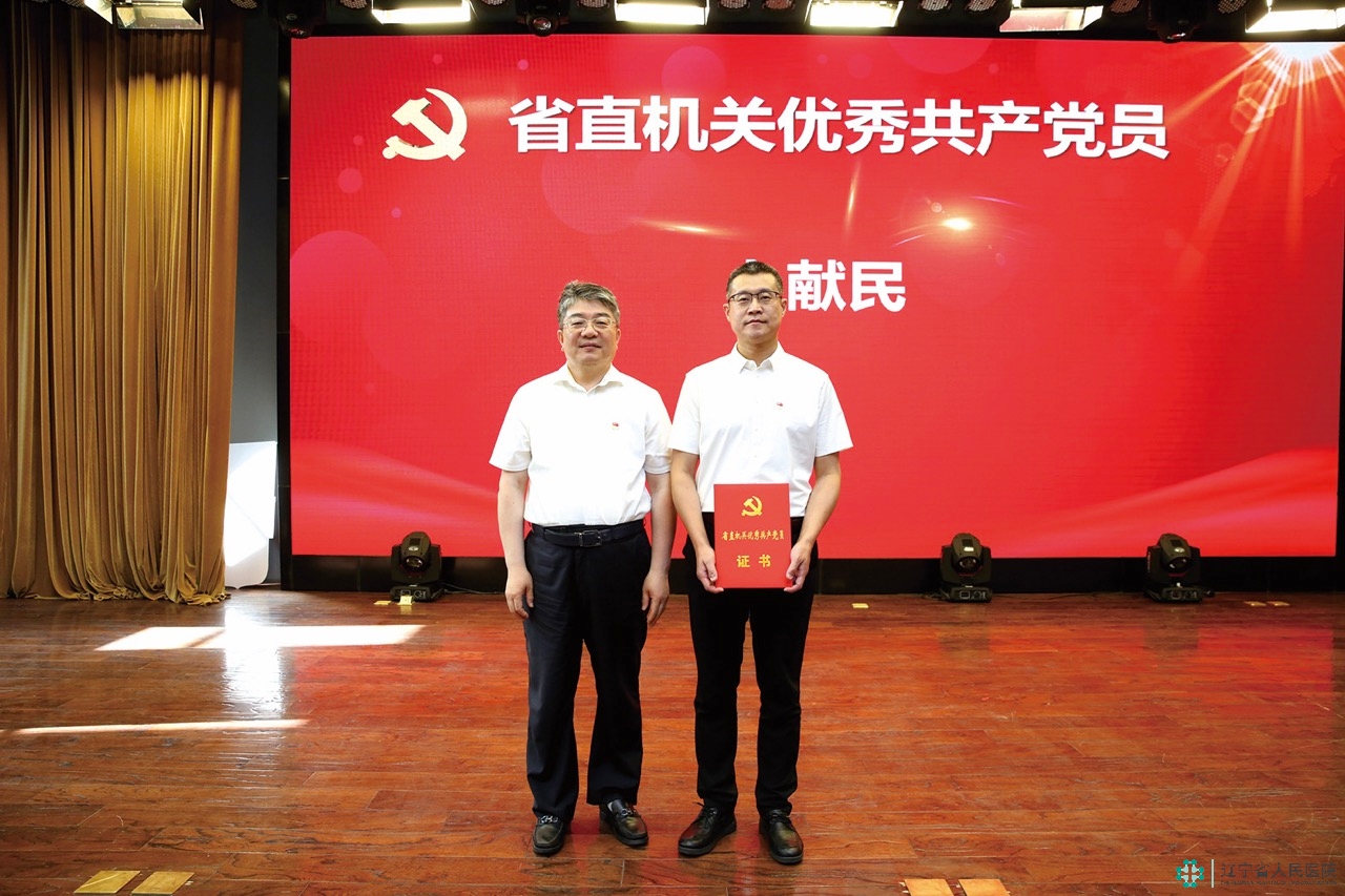 党委书记曲鹏为获得省直机关“优秀共产党员”称号的副院长卜献民颁奖