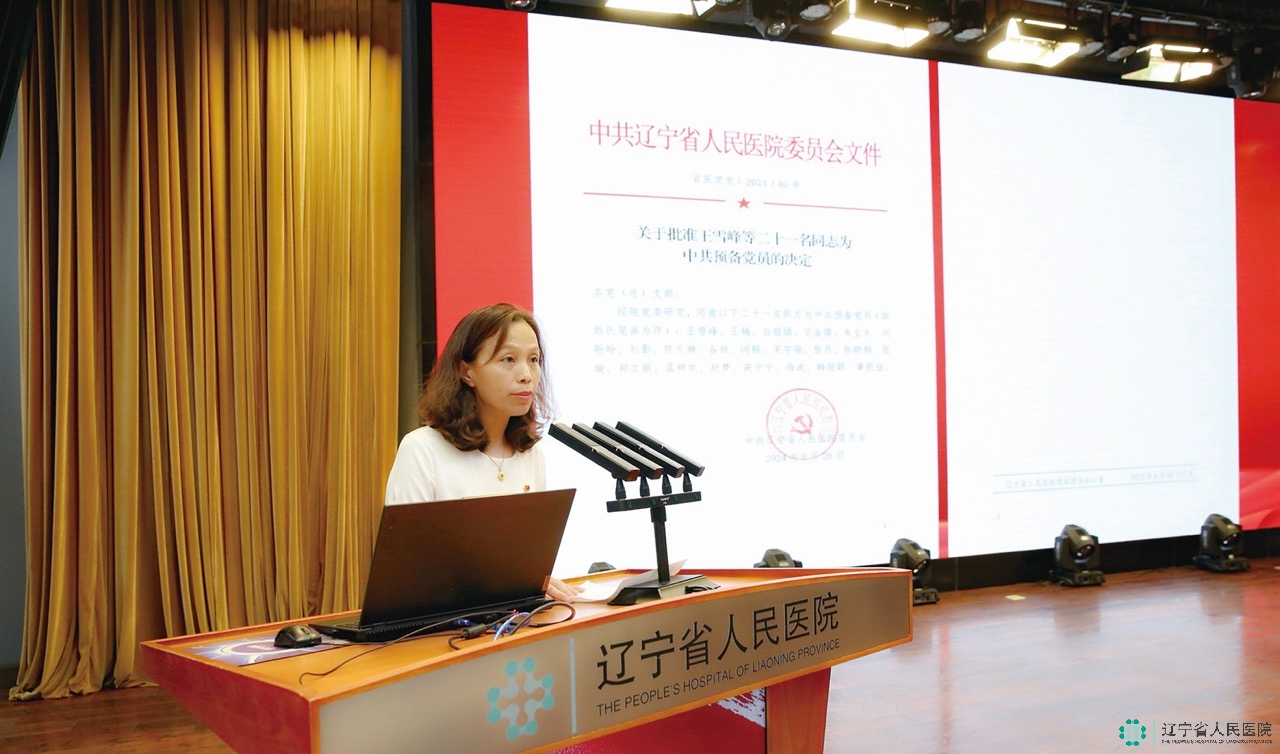 党委委员、副院长马波宣读《关于批准王雪峰等二十一名同志为中共预备党员的决定》