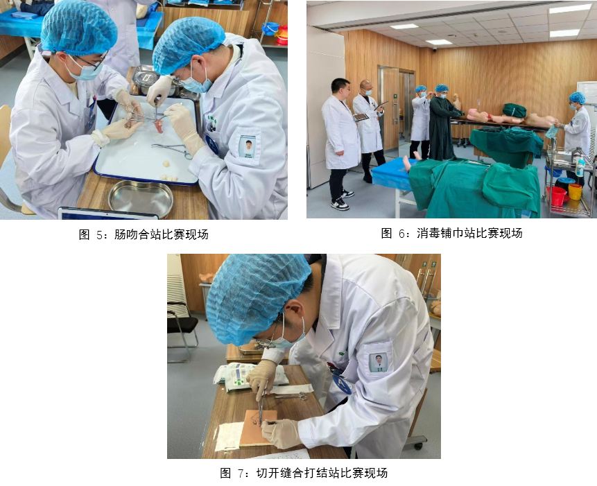 此次大赛采用分站式考核,共设置4站,涵盖了外科临床工作中的关键领域,全面考察选手的专业技能和综合素质。比赛环节紧密围绕临床实际场景展开,设置了消毒铺巾、肠吻合、切开缝合、腹腔镜操作等核心外科技能,既注重基础操作的规范性,也强调复杂场景下的实操应用能力。