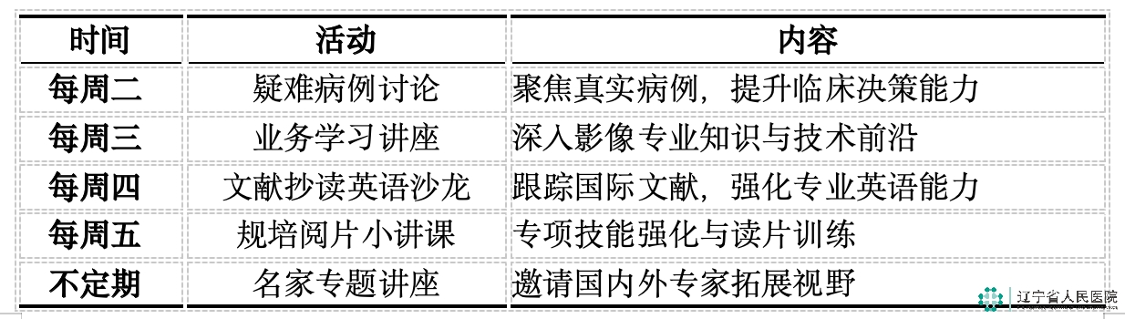 辽宁省人民医院放射科是辽宁省临床重点专科与国家级住院医师规范化培训基地。我们秉承成熟、系统的规培理念,致力于培养临床技能扎实、科研思维创新、职业素养卓越的医学影像专业人才。