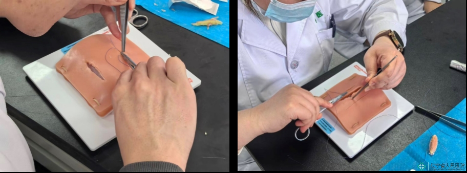实操演练环节是本次培训的重点。培训现场准备了仿真皮肤模型、美容缝合针、可吸收缝线等全套实操器材,为学员提供了真实的操作模拟环境。讲师首先进行全程示范,从进针角度、针距控制、打结手法,到皮下减张的精准操作,每一个步骤都规范细致、讲解到位,着重强调“无创伤、无张力”的操作原则,力求让学员直观掌握美容缝合的精细技巧。指导教师穿梭在各小组之间进行指导,针对学员操作中出现的进针角度偏差、张力控制不当、打结不规范等问题,及时纠正并反复示范,耐心讲解操作要领,手把手引导学员调整手法,确保每一位学员都能规范完成操作流程。