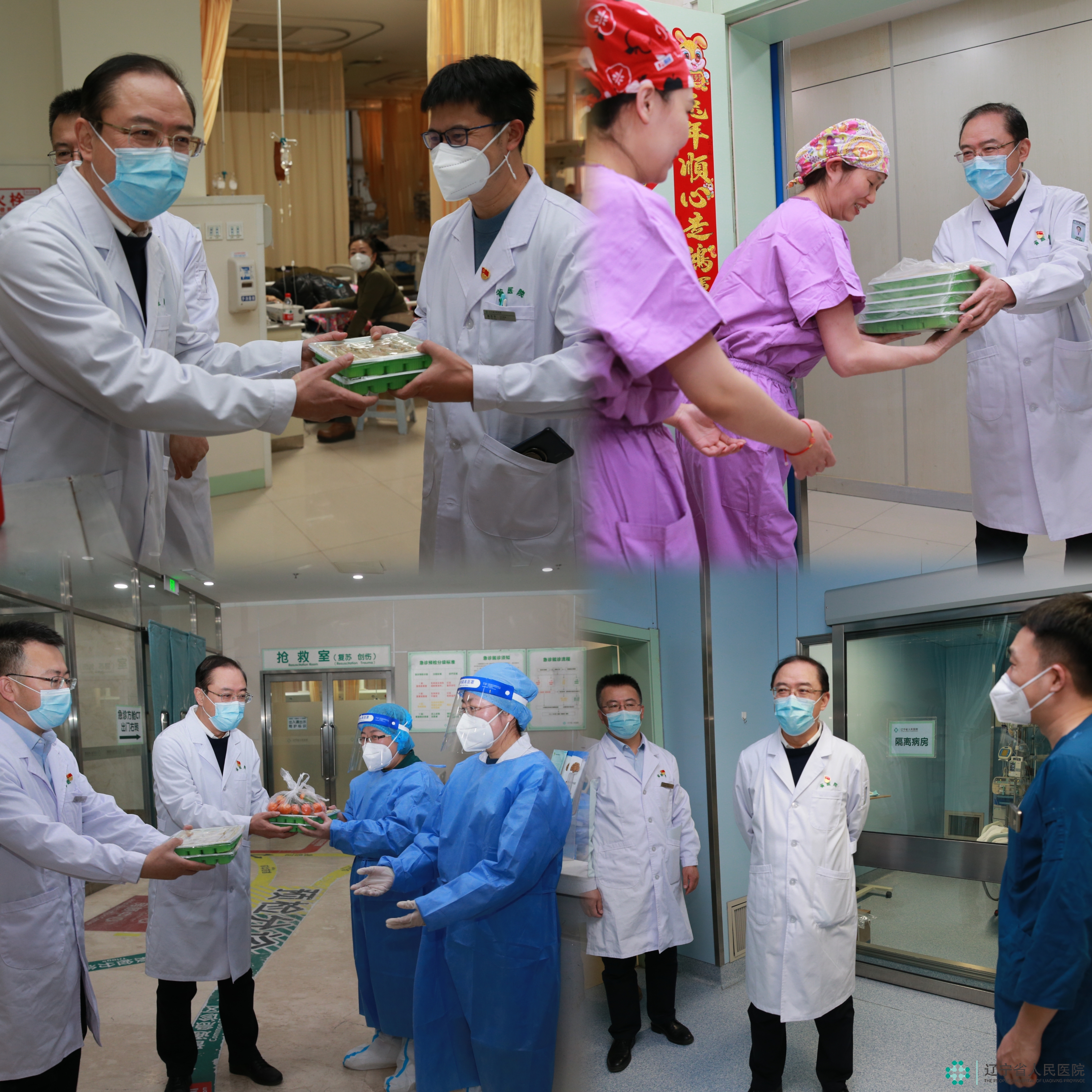 1月21日(农历腊月三十),院党委书记曲鹏、院长臧培卓,副院长卜献民、李岩峰在相关职能部门负责人、总值班等人员的陪同下分为五组,为全院各临床科室一线医务人员送来新春的慰问,送上热气腾腾的饺子,带来家的味道和幸福的挂念。