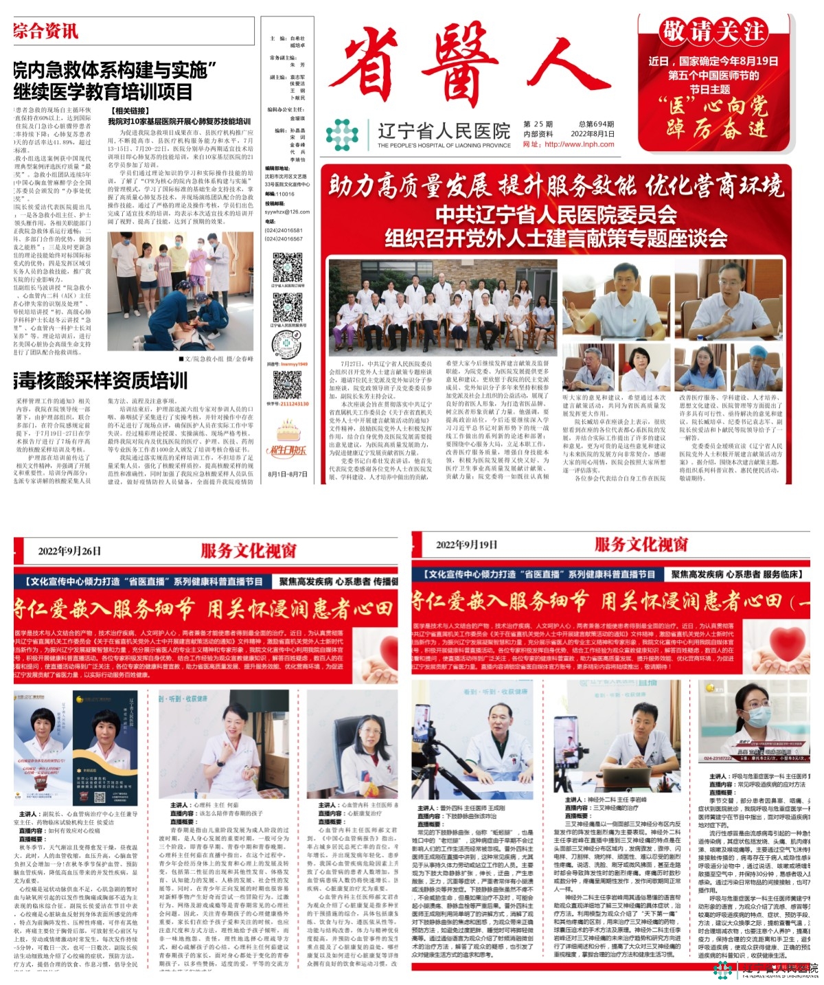 我院由院党委牵头、文化宣传中心组织了主题为“助力高质量发展、提升服务效能、优化营商环境”党外人士建言献策项目,经党委会审议通过后报送参加评审,活动包括党外人士建言献策座谈会一次、直播科普义诊活动6场,副院长侯爱洁、李岩峰,普外三科主任李立、心理科主任何茹、普外四科王成刚、呼吸与危重症医学一科黄建宁、心血管病治疗中心郝文君7名民主党派专家和党外知识分子代表、心脏外科主任李强积极参与公共媒体健康传播。由文化宣传中心汇总形成立项报告和成果转化报告经院党委通过报送至省卫生健康委参与活动。该项目最终在全省91家单位报送的149项建言献策成果评比中获得优秀奖。