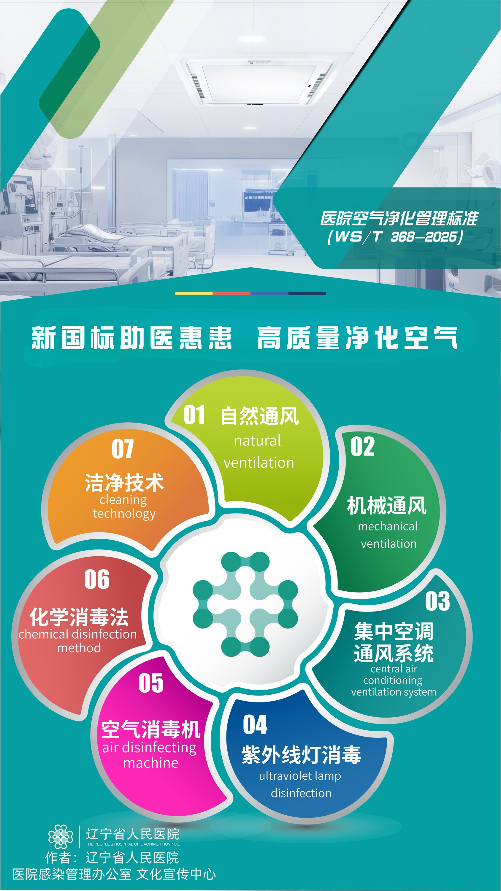 近日,由我院感染管理办公室创意制作、文化宣传中心配合完成的标准宣贯作品《医院空气净化管理标准》(WS/T 368-2025),凭借其严谨规范的设计和深入浅出的内容被辽宁省卫生健康委法规处选中,推荐至国家卫健委法规司。并再次在全国众多参选作品中脱颖而出、被国家卫健委选中发布在卫生健康标准网官方网站的“标准培训与标准解读”栏目中(https://wsbz.nhc.gov.cn/wsbzw/),供各地参考使用。