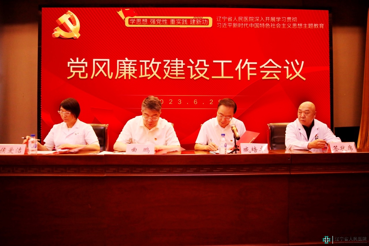 院党委书记曲鹏、院长臧培卓与院班子成员,分管院领导与重点岗位职能、临床、医技科室负责人代表一一签署《党风廉政建设责任状》。全体参会人员观看了警示教育片《警钟为你长鸣》和《清风传家故事会》,集中学习以案促改案例。