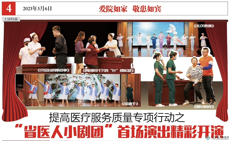 今年是我院“提高医疗服务质量专项行动”全面推进的一年,先后完成了门诊就诊流程的合理化、信息化支撑下的诊疗过程的便捷化,有效节约了患者等待时间,升级改造的就医环境缓解了患者和家属的焦虑心情。创新宣教项目——省医小剧团之服务文化沉浸式演出获得了“2023年度全国品牌活动最佳案例奖”。