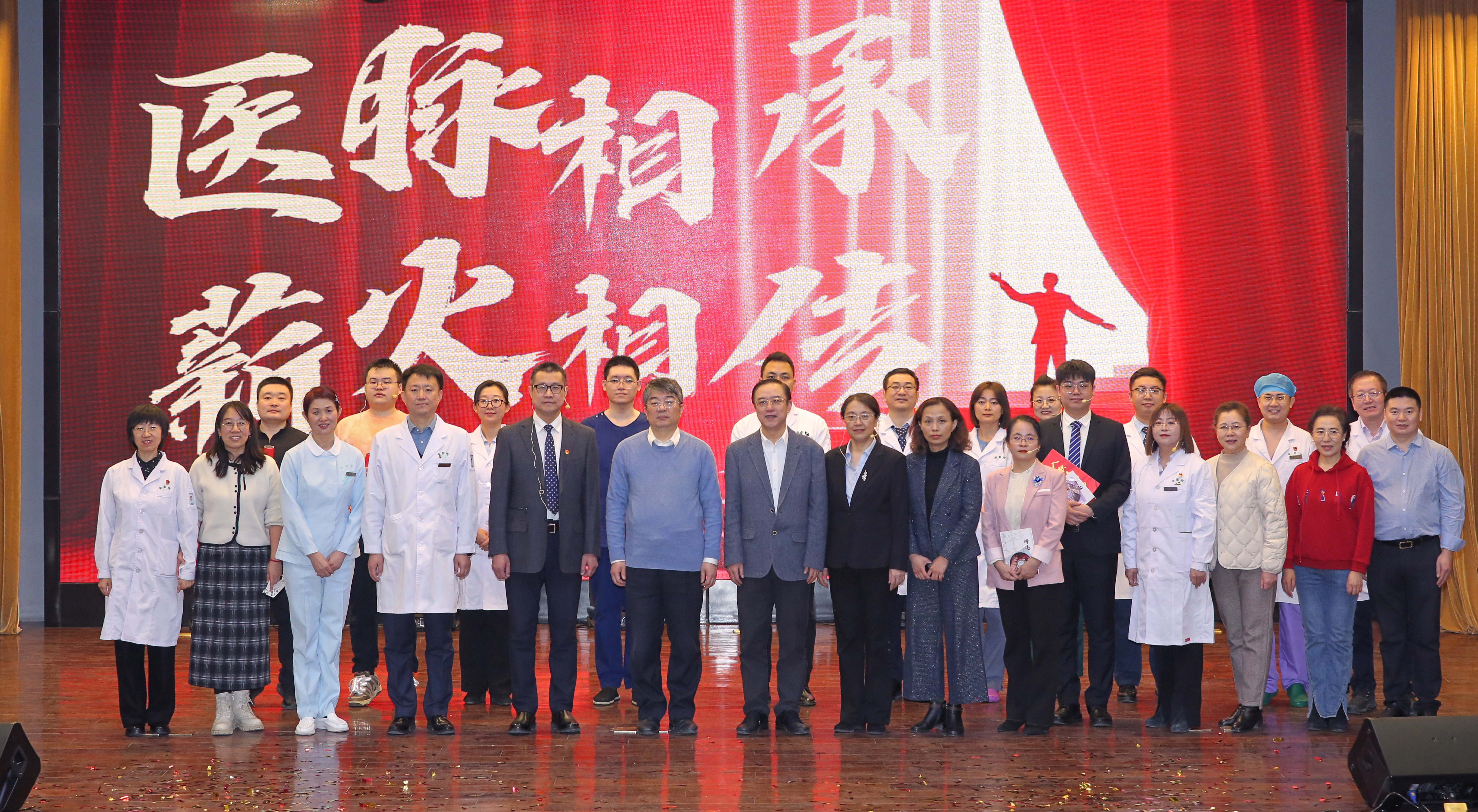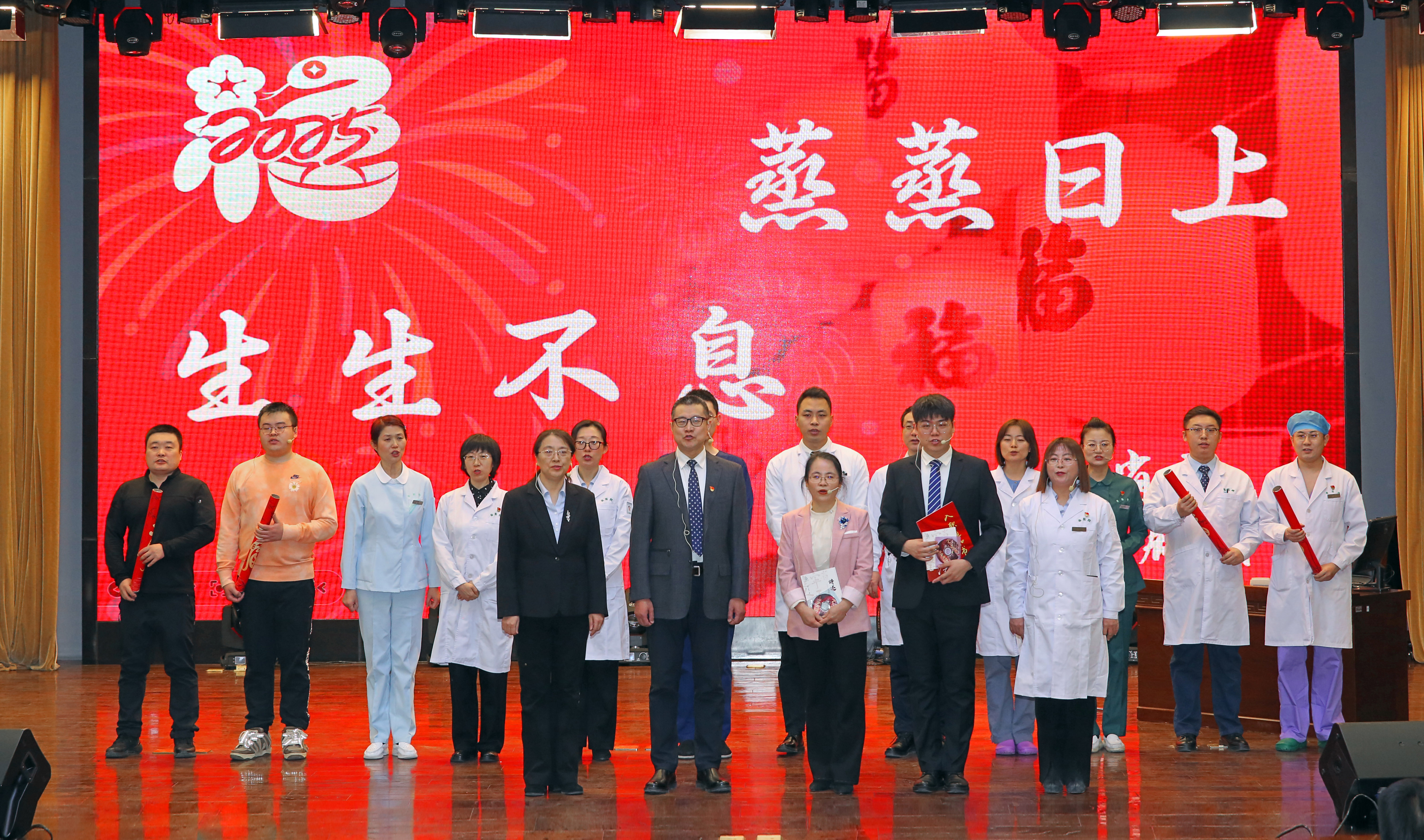 1月14日中午12:30,以“爱院如家、待患如宾的职业医者”为主题的省医小剧团之后院庆时代“文化自信与服务提升”专场演出正式开演!院党政领导班子成员、党委委员、各科室负责人、党支部书记、护士长、通讯员及部分员工代表近300人到现场观看演出。